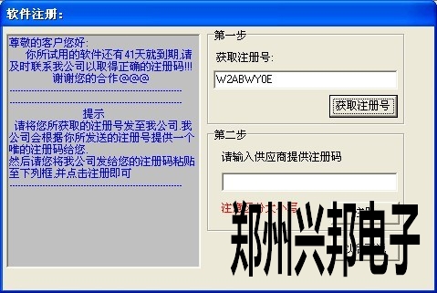 軟件安裝完成后有一個(gè)月的試用期,當(dāng)過了試用期后軟件就打不開了,所以在試用期結(jié)束前就要注冊軟件,軟件注冊時(shí)首先在軟件的幫助-軟件注冊中獲取一個(gè)注冊號,如下圖所示,把獲取到的注冊號發(fā)到公司,公司會(huì)提供一個(gè)注冊碼,把注冊碼復(fù)雜粘貼到第二步的注冊碼中,點(diǎn)擊注冊就可以了。如果軟件已經(jīng)過期獲取不到注冊號,那么就要通過一個(gè)小插件獲取注冊號,在插件上進(jìn)行注冊就可以了。