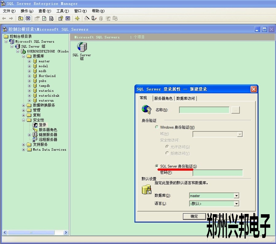 2000數(shù)據(jù)庫(kù)安裝后忘記密碼可以這樣操作進(jìn)行重設(shè),進(jìn)入2000數(shù)據(jù)庫(kù)后在安全性上右擊進(jìn)入此畫(huà)面