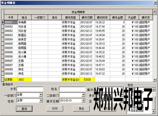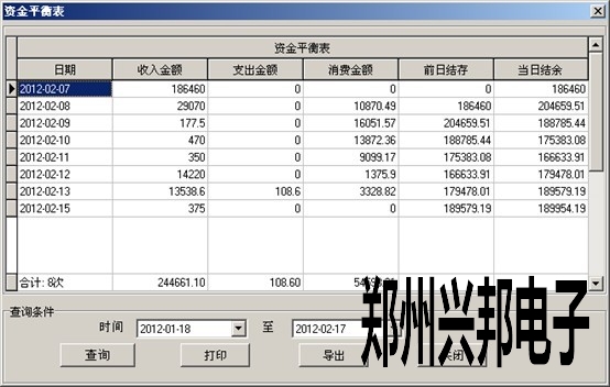 3.數(shù)據(jù)管理-資金明細(xì)表中可以根據(jù)標(biāo)志‘收取卡本金’查詢出收取卡本金合計(jì):52020元,189954.19-52020=137934.19