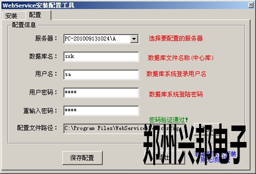 配置文件路徑:選擇WebService路徑下的(步驟五中選擇的webservice路徑)Web.config 單擊【保存配置】按鈕