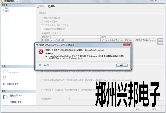 我們軟件的信息都存在數(shù)據(jù)庫(kù)中,當(dāng)我們重裝系統(tǒng)或者更換電腦時(shí),我們只要把數(shù)據(jù)庫(kù)備份,還原一下就可以。但還原有時(shí)候會(huì)報(bào)如下錯(cuò)誤: