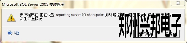 我們公司最新消費(fèi)機(jī)的刷卡消費(fèi)和數(shù)據(jù)采集,都是通過(guò)can軟件來(lái)控制和顯示的,采集的信息都通過(guò)can軟件設(shè)置存在數(shù)據(jù)庫(kù)2005中,所以安裝can軟件,首先要安裝數(shù)據(jù)庫(kù)2005,但在安裝數(shù)據(jù)庫(kù)2005時(shí),安裝程序可能會(huì)在正在設(shè)置reportingshre point 排除路徑 期間遇到錯(cuò)誤,遇到的錯(cuò)誤如圖所示