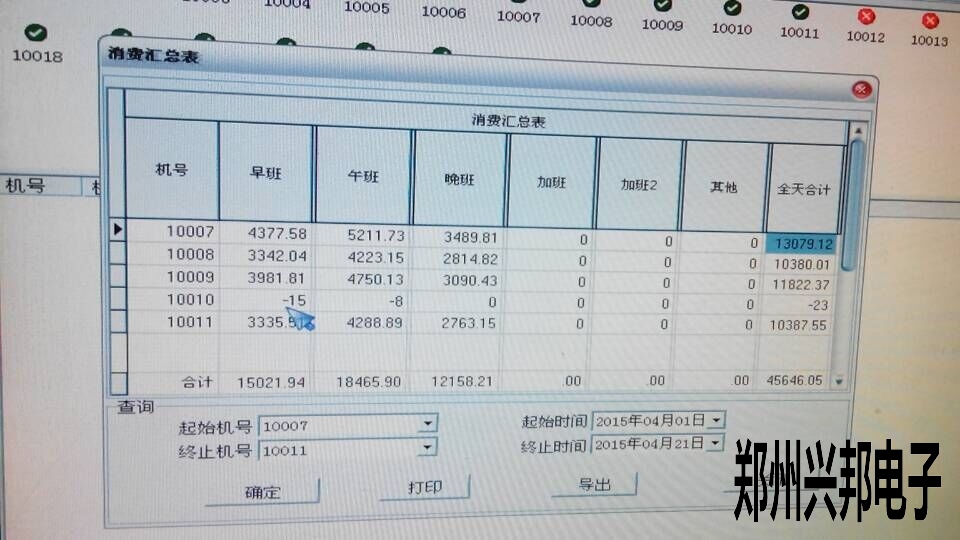 上面這個圖10號機早班午班都是負數(shù),首先查一下這個時間段的消費明細表里的記錄。