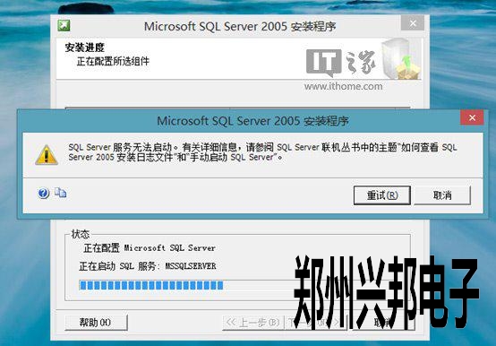 6、當(dāng)出現(xiàn)Sql Server 2005無(wú)法啟動(dòng)時(shí),這個(gè)時(shí)候就不先點(diǎn)擊重試或者取消。
