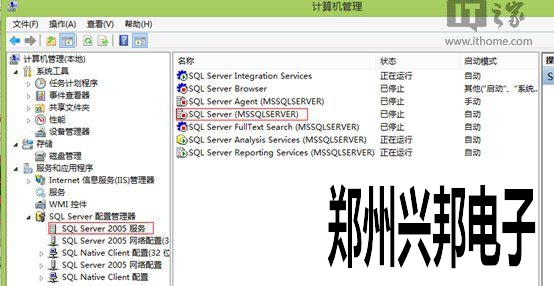 8、當(dāng)完成SQL Server 2005安裝后,先不啟動(dòng)套件,而是先強(qiáng)制停止SQL Server的服務(wù)項(xiàng)目。(進(jìn)入計(jì)算機(jī)管理,選擇SQL Server配置管理器,禁止SQL Server 2005相應(yīng)的服務(wù)項(xiàng)目)