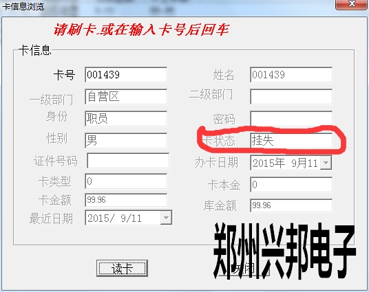 卡片就上面三種狀態(tài),另外一些操作,會(huì)造成卡狀態(tài)改變,比如:掛失的卡解掛,就變成消費(fèi)卡;掛失的卡補(bǔ)辦新卡,掛失卡就會(huì)變成新卡;消費(fèi)卡被收繳舊卡就變成新卡。新卡在消費(fèi)機(jī)上刷卡會(huì)顯示1-Err,消費(fèi)卡會(huì)顯示金額,掛失卡會(huì)顯示4-Err。