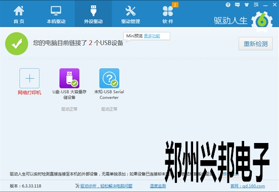 打開驅動人生,選擇“外設驅動”,這里會顯示裝好的和沒裝的外設驅動,把沒裝好的驅動安裝好;