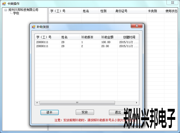 打開互聯(lián)網(wǎng)一卡通平臺(tái),進(jìn)入制卡中心 -- 卡管理。然后鼠標(biāo)右鍵,選擇 發(fā)放前期補(bǔ)助。