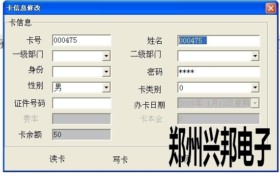 2、先把卡放IC卡讀卡器上,讀卡,出現(xiàn)卡信息后,直接修改卡信息。(注:卡號是不能修改的??ㄌ栔挥性诎l(fā)行的時候來修改,一但發(fā)行就不能修改了。)