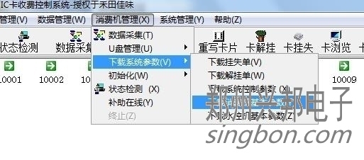 2、設(shè)好后要把機(jī)器連通。狀態(tài)檢測是綠色的對勾。然后下載一下參數(shù)。消費機(jī)管理--消費機(jī)基本參數(shù)。