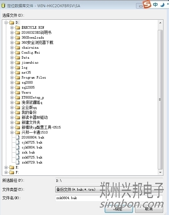 點(diǎn)擊“...”,出現(xiàn)下圖頁(yè)面,選擇合適的路徑,文件名以備份當(dāng)天日期命名(后綴為.bak)。