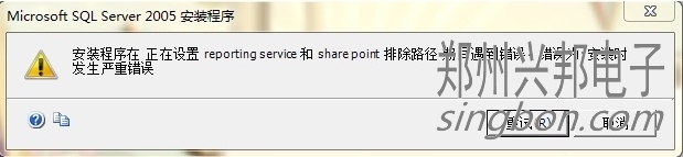 互聯(lián)網(wǎng)一卡通食堂售飯機(jī)的軟件,采集的信息都通過軟件設(shè)置存在數(shù)據(jù)庫SQL SERVER2005中,所以安裝軟件,首先要安裝數(shù)據(jù)庫SQL SERVER2005,但在安裝數(shù)據(jù)庫SQL SERVER2005時(shí),安裝程序可能會(huì)在正在設(shè)置reporting和shre point 排除路徑 期間遇到錯(cuò)誤,遇到的錯(cuò)誤如圖所示: