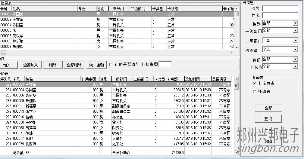 2、軟件上卡管理--補助入卡輸入。在里面添加補助的人員和金額。如果需要清零的話就把清零勾選上。