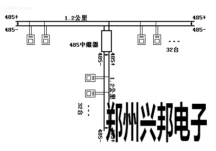 利用485中繼器或485集線器,可以將一個大型485網(wǎng)絡(luò)分隔成若干個網(wǎng)段。485中繼器或485集線器就如同485網(wǎng)段之間連接的"橋梁"。當(dāng)然每個網(wǎng)段還是遵循上面的485規(guī)范,即1.2公里長度,32個節(jié)點數(shù)。