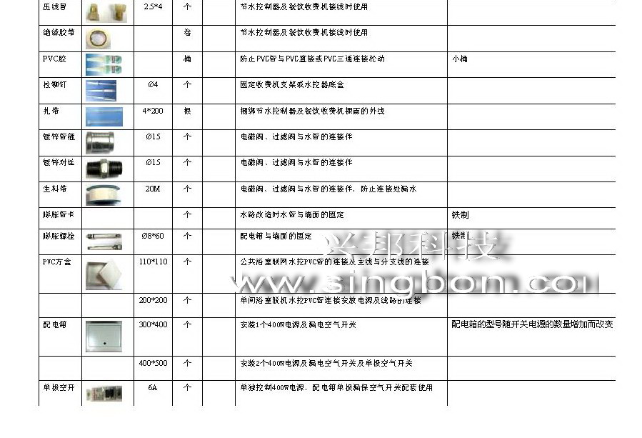 食堂售飯、消費、水控等系統(tǒng)施工中所需要的材料規(guī)格清單