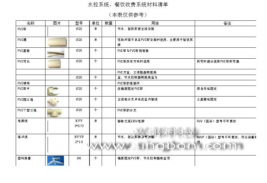 [文章內(nèi)容簡介]:食堂售飯、消費、水控等系統(tǒng)施工中所需要的材料規(guī)格清單。